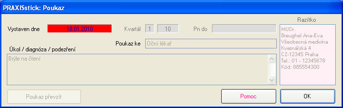 Data poukazu mohou editovat jen uživatelé s dostatečnými oprávněními (lékař, stomatolog, ...).