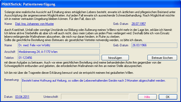 Die Abbildung zeigt das Formular Patientenverfügung.